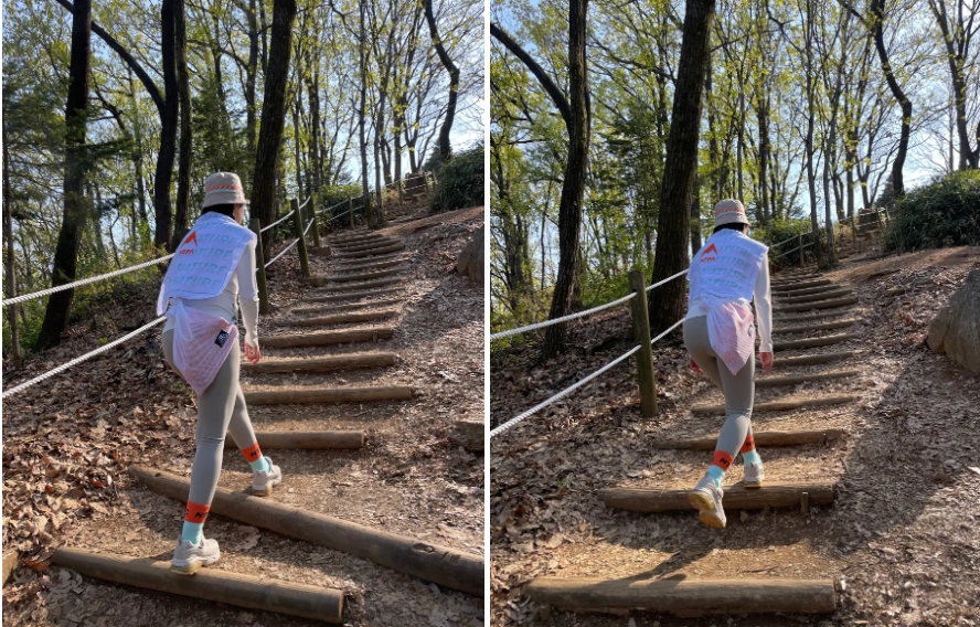 광명 지역의 명물인 도덕산 출렁다리를 보기 위해서는 짧고 굵은 비탈길을 지나야만 하는데요. 꽤 경사도가 높은 구간도 있는지라 등산 전에는 반드시 안전을 위해서 등산화 착용은 필수인 것 아시죠? :)