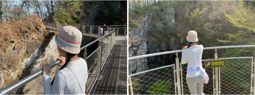 본인이 고소공포증을 가지고 있는 분이라면 흔들바위라는 이름 답게 걷다 보면 꽤 흔들거려서 무서울 수 있어요. 저는 워낙에 자주 방문하는 도덕산 출렁다리라 그런지 너무 익숙하네요.