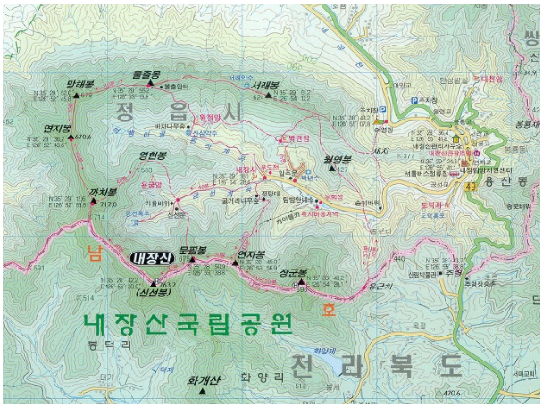 ✔ 등산코스 : 내장사 ~ 불출봉 ~ 망해봉 ~ 연지봉 ~ 까치봉 ~ 신선봉 정상 ~ 신선삼거리 ~ 까치봉 입구 ~ 내장사 원점회귀