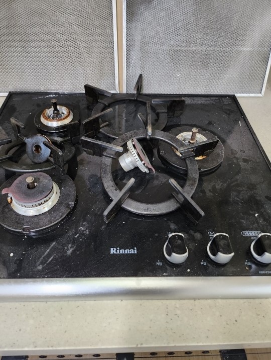 다음은 주방에 가스레인지 부분이에요. 얼룩들이며, 벽 부분에도 기름때들이 있었는데
