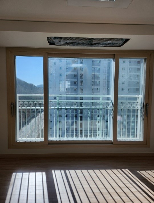 작업이 완료된 주방과 거실 창의 상태입니다.