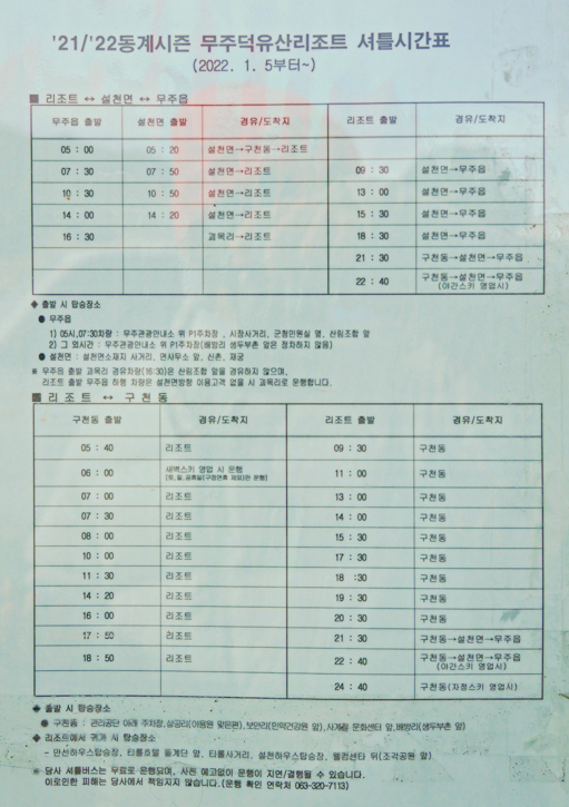 2022년 동계시즌 무주 덕유산리조트 스키장 셔틀시간표