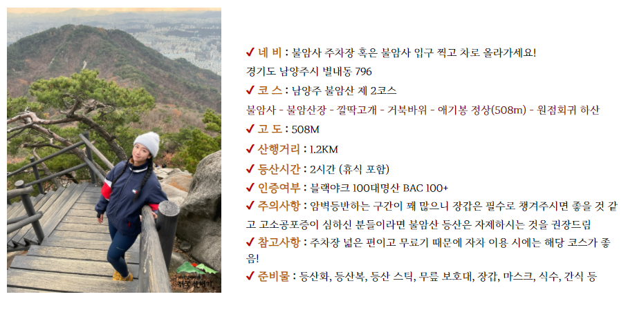 왕복 2시간으로 짧은 등산 시간으로 서울 시내 절경을 한 눈에 보고 이렇게 멋진 사진도 건질 수가 있답니다. 곧 시간나면 불암산철쭉동산도 다녀와보고 싶더라고요. 다양한 볼거리들이 있어서 서울근교 등산지로 꼭 추천하고 싶어요!