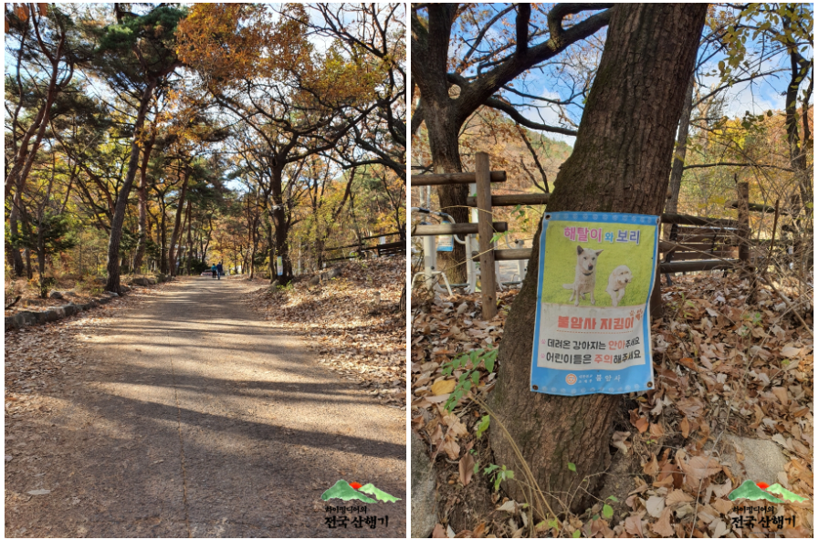등산하는 동안 해탈이나 보리를 만날 수 있으니 애완동물을 동반한 등산이라면 반드시 안아서 등산해주시길 바라요.