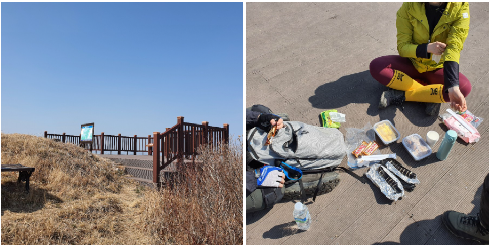 그렇게 영취산 정상에 도착 후, 비상식량으로 준비해 온 도시락을 펼쳐놓고 폭풍 흡입했어요.