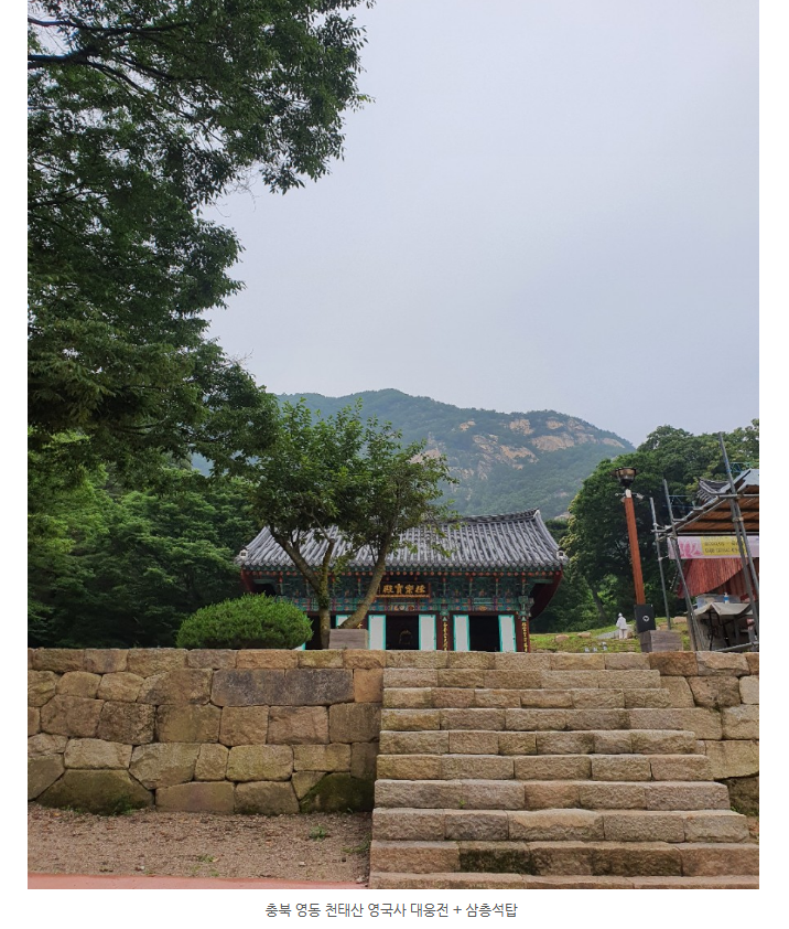 하산하면서 삼단폭포를 지나서 천태산 영국사를 마주하면 얼마나 힐링인가.