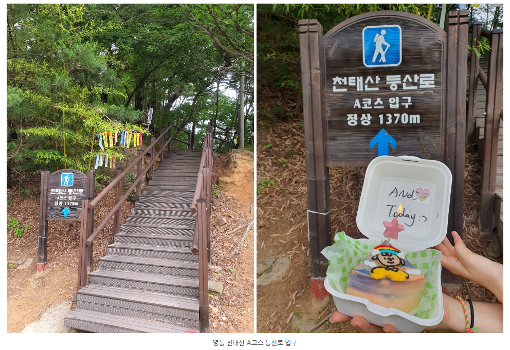 영동 천태산 등산코스 : 등산로 A코스 → 등산로 D코스
