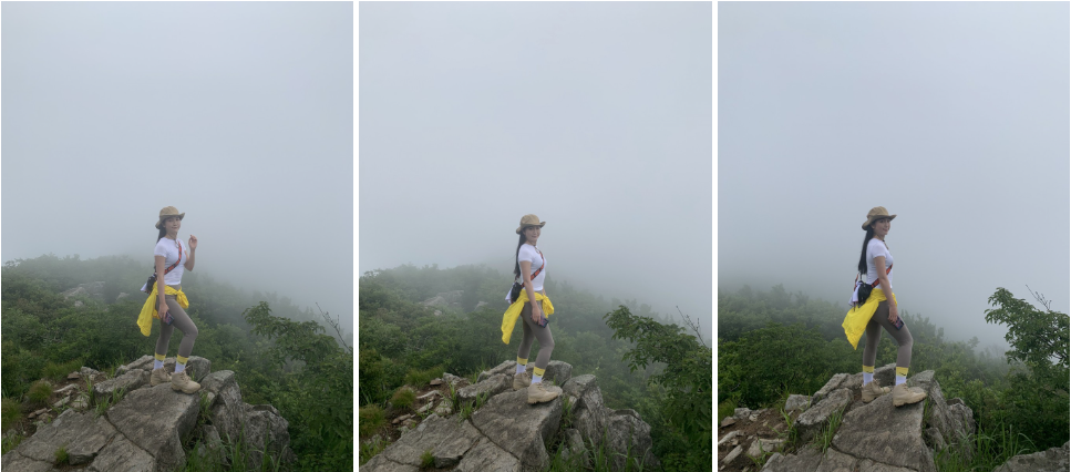 정상목에 오르고 보니 자욱하게 운무가 껴서 더 으스스한 느낌이 들었다. 여름이라 노란색으로 포인트를 줘봤다.