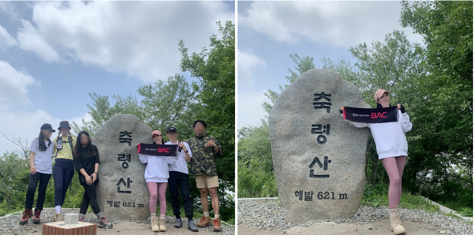 정상석에서 도착해서 보니 블랙야크 100대명산 인증 타올 가지고