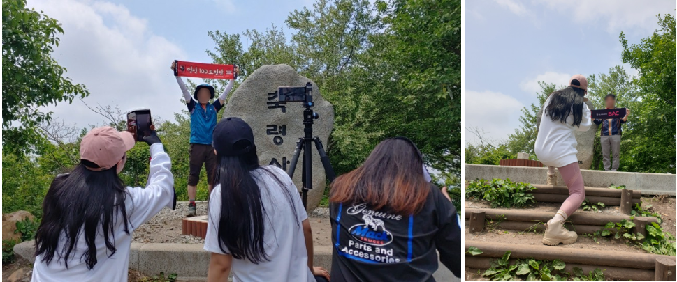 중간중간 재미있는 인증샷 포인트가 있어서 짧은 등산 시간에 비해 포토스팟들이 많이 있었던 곳이었다.정상 뷰가 역대급이라고 할 수 있을정도로 파노라마 샷이 가능했던 산이랄까.
