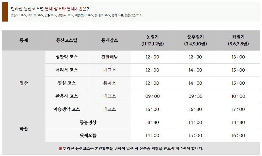 ※ 한라산 등산코스 중에서 영실코스의 경우는 관음사나 성판악 코스와는 다르게 따로 입산 예약을 할 필요가 없습니다.