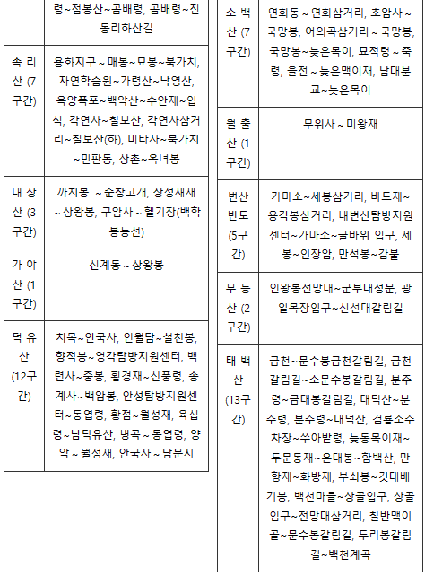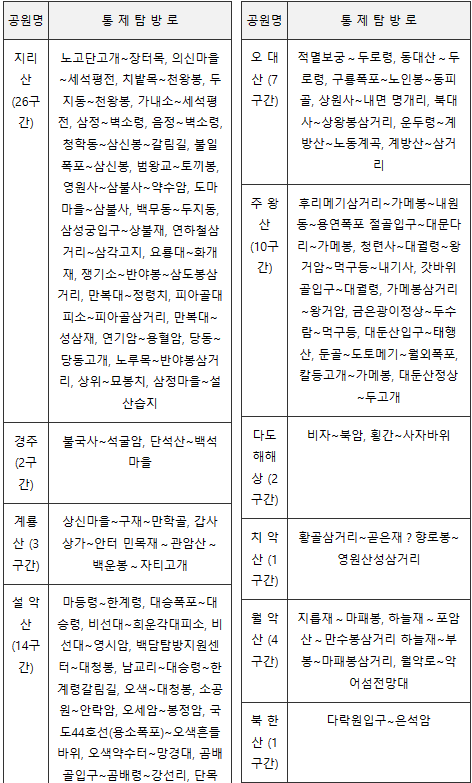 2. 통제구간 : 18개 국립공원(한려해상, 가야산, 태안해안 제외)